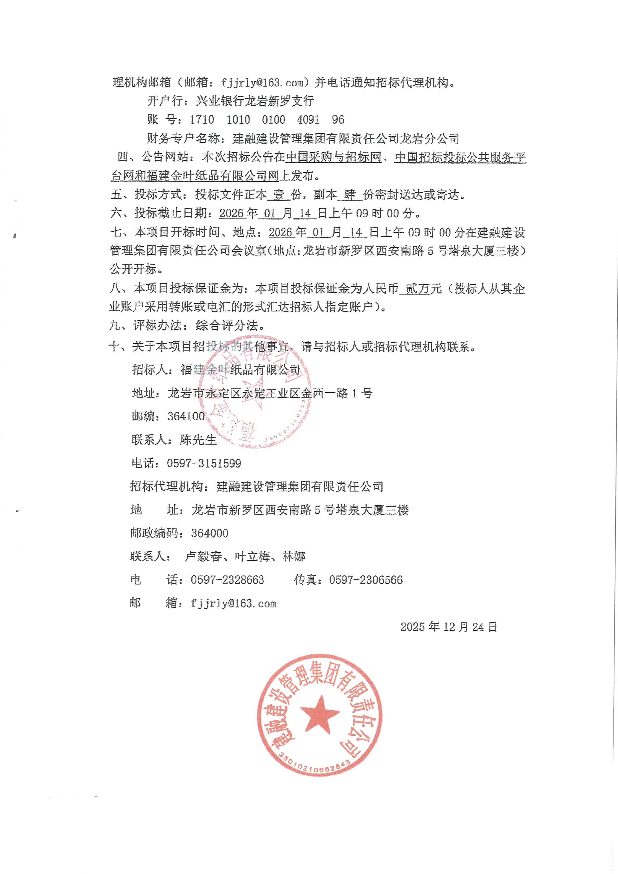 福建金葉紙品有限公司生產性廢料處置項目招標公告